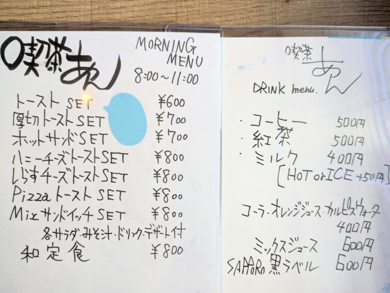 喫茶あん メニュー