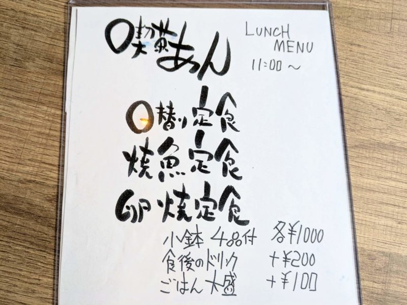 ランチメニューは3種類、日替わり・焼き魚・卵焼き