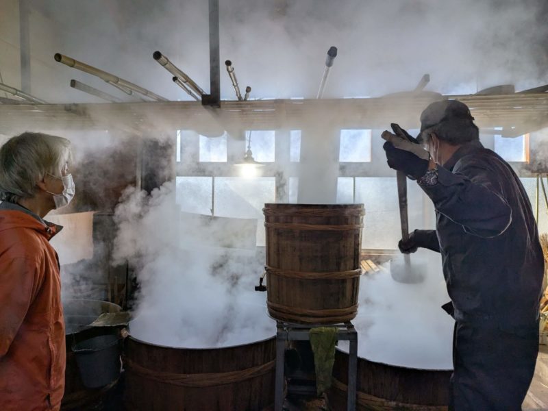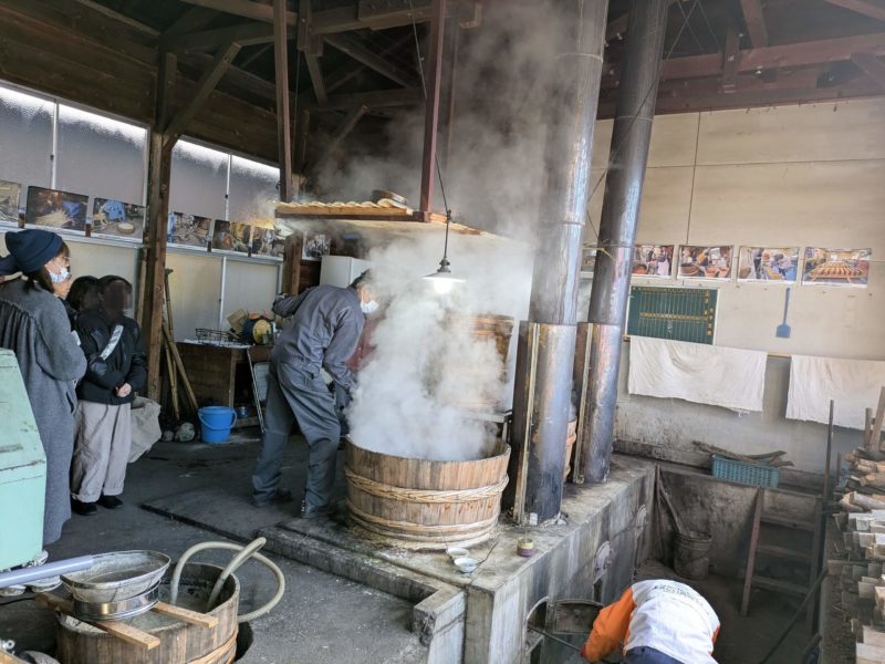 煮ていくよ~湯気が立ち上り建物内に充満する
