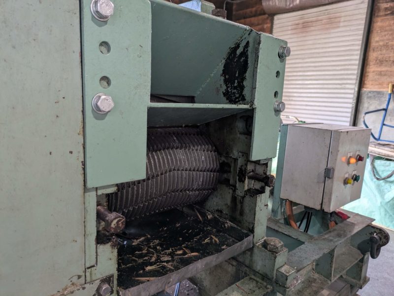 年季の入った圧搾機、ものすごい力で硬いサトウキビをバリバリと絞っていきます