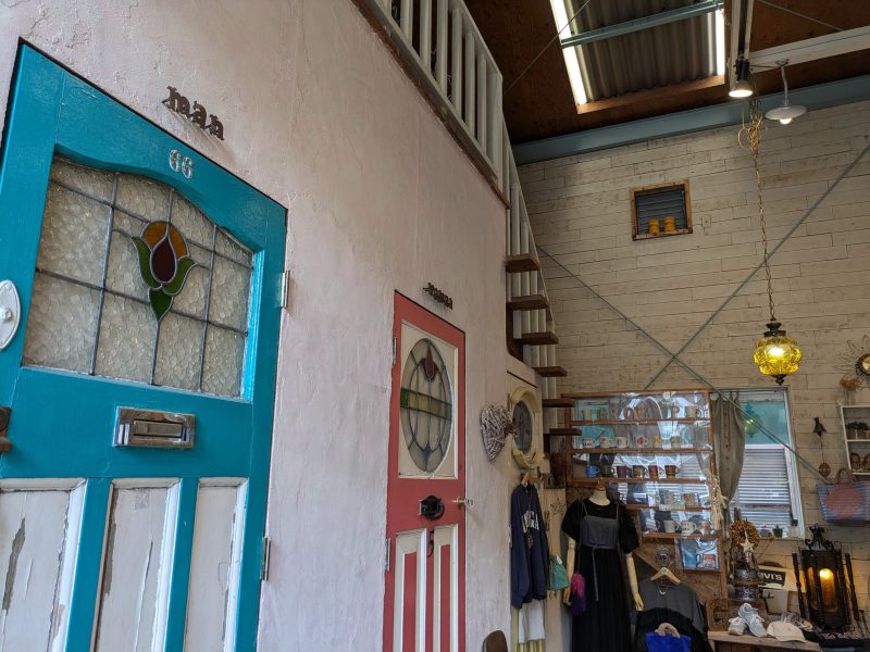 トイレのドアすら素敵、程よいダメージの木製ドアにステンドグラスがはめ込まれてる