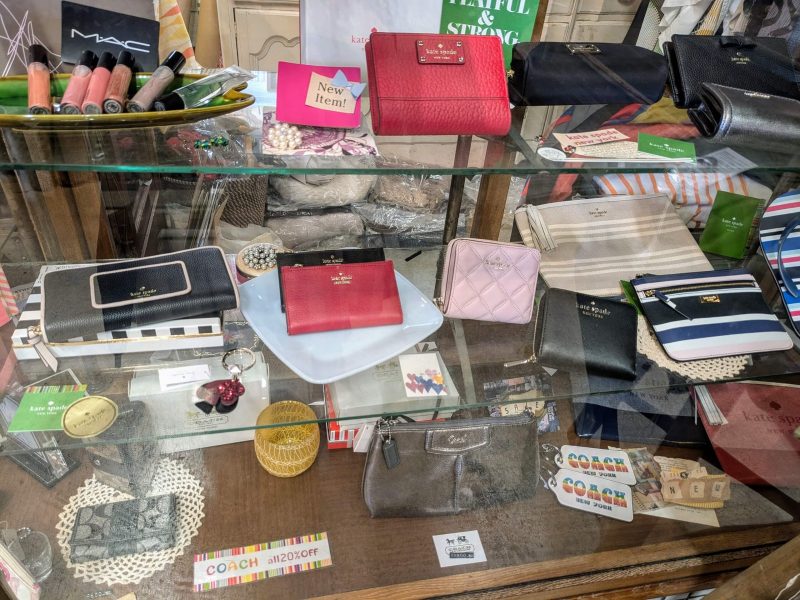 ブランド品も置いてあります、私の好きなケイトスペード財布の品ぞろえが豊富で、見たことないデザインもある、海外モデルを買い付けてきてるそうですよ