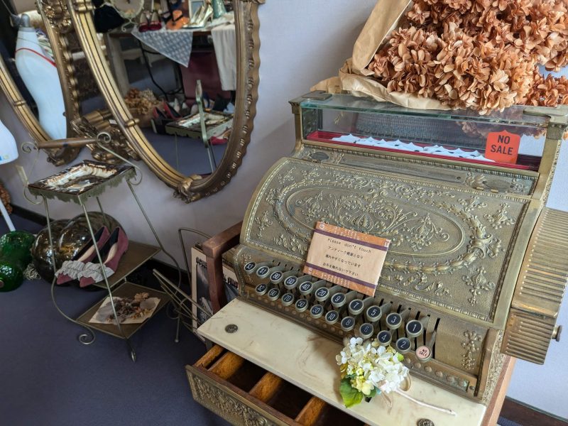 さりげなく置かれているのは本物のアンティークなレジスター、繊細なので触っちゃダメよ