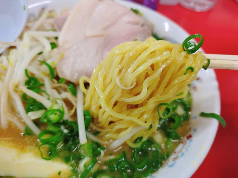 山盛りのネギともやしで麺もスープもほぼ見えない(笑)もやしは今も一袋丸ごと入ってるのかしら
