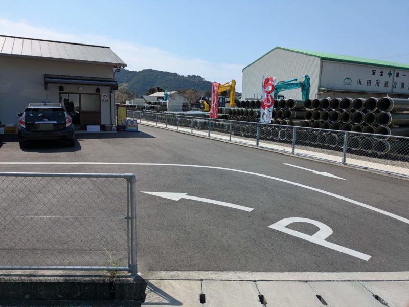 お店の建物をぐるーっと回り込むように駐車場に入ります