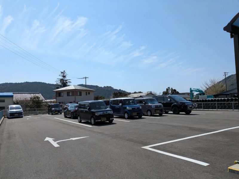広々とした駐車場、15・16台くらいプラス店前にバイクもずらっと停められます