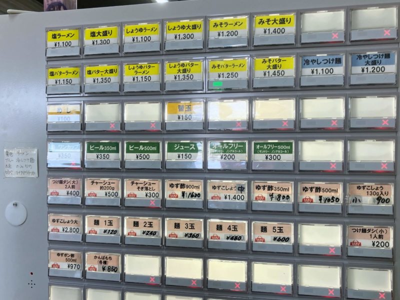 メニューはシンプル、基本のラーメンが塩・しょうゆ・みその3種類、そこにバターを入れるかどうか、そして冷たい麺が冷やしつけ麺