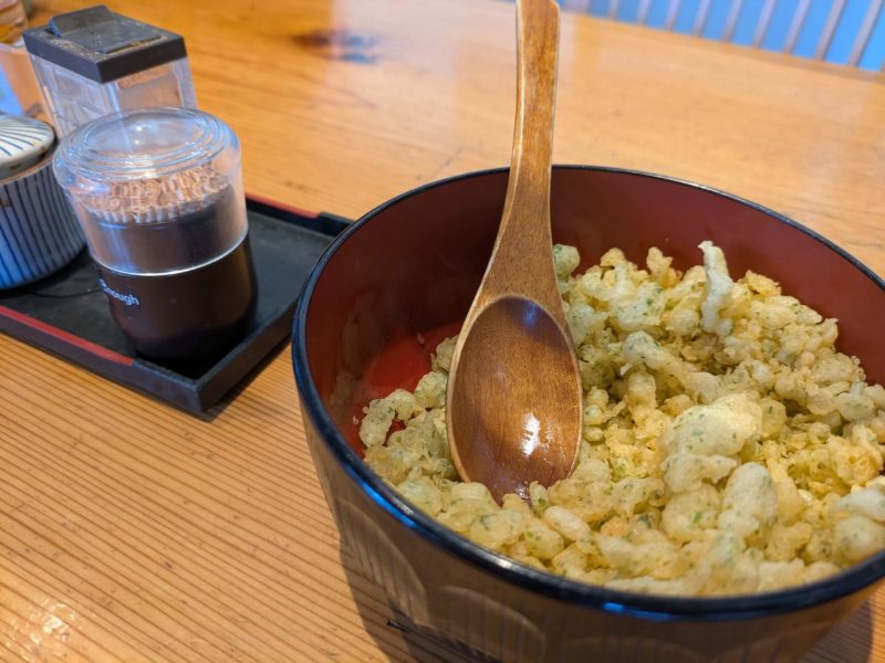 テーブルには青のり入りの天かす