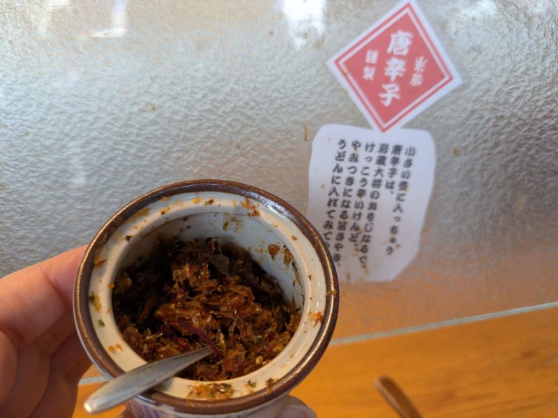 オリジナル唐辛子の辛味も効いて、独特のおいしさ