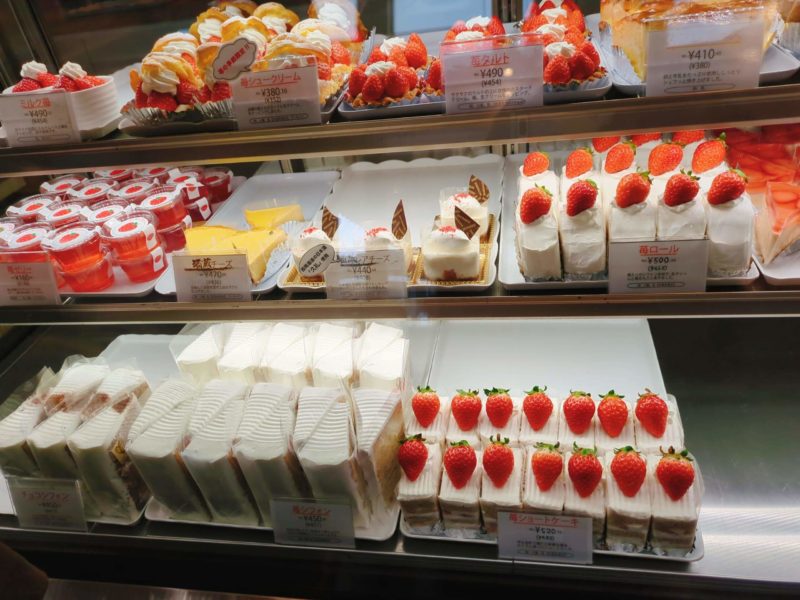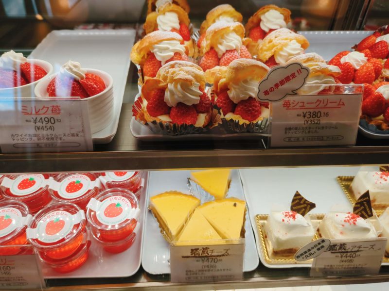 イチゴの季節です、イチゴスイーツがきらびやかに並んでます