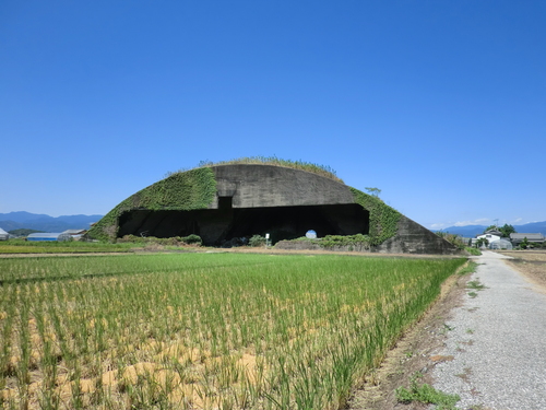 この辺りは掩体(えんたい)と呼ばれる、戦時中の戦闘機格納庫が点在する地域。