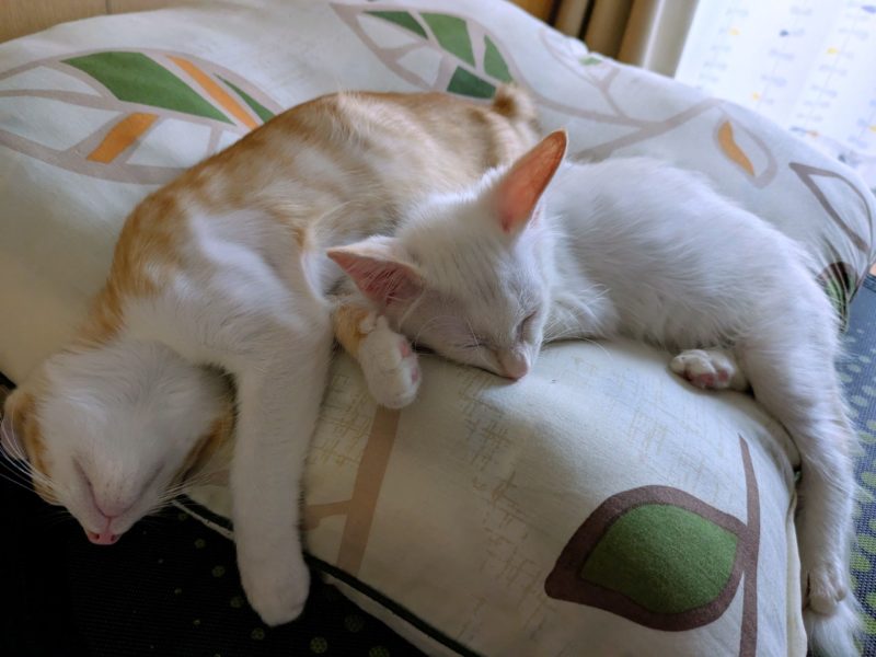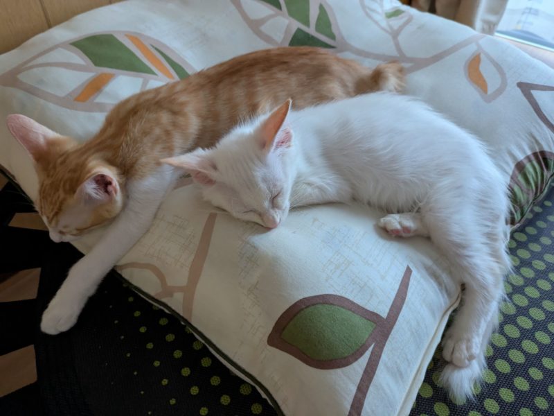 だいぶ大きくなったけど、まだまだやんちゃ盛りの子猫2匹のパワフルさに寝不足の日々です