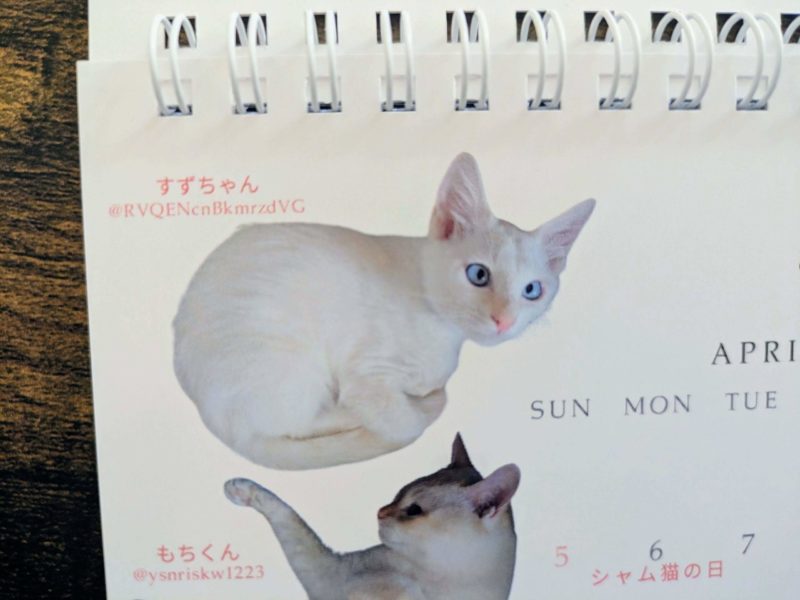 鈴ちゃんの毛色が「笹かま猫」と呼ばれている話はしたよね、その笹かま猫の写真を集めたカレンダーを毎年作っている方がいて、笹かま猫の飼い主さんたちから送られた愛猫の写真が掲載されるので、ぜひうちの鈴も載せてもらいたいと写真を送りました