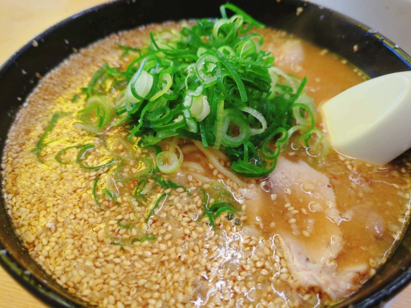 ゴマがたっぷり、そして意外とすっきりとした味噌スープ、醤油が背脂系なので味噌も濃厚をイメージしてたら、あっさり飲みやすい優しいお味でした、ちょいと辛味噌足してみるのもいい