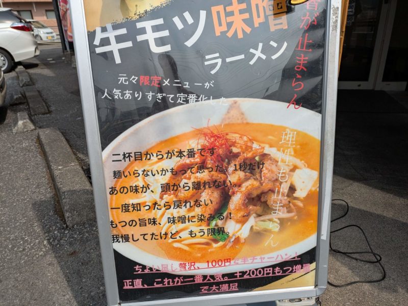 ずらーっと旗も立ってる「牛モツ味噌ラーメン」がとってもお勧めみたい