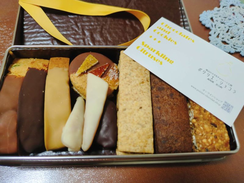 数種類の柑橘が使われたチョコレートとクッキー、どれも最高においしくて毎日少しずつ楽しみにいただきました