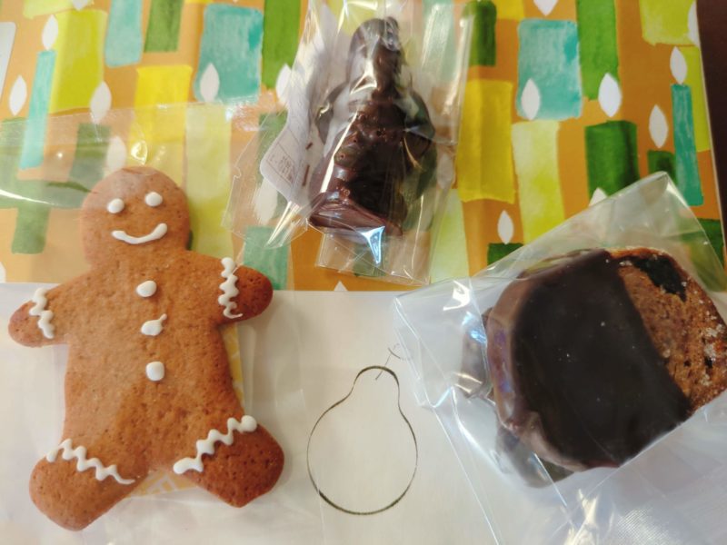 クリスマスらしいかわいいチョコ&クッキーが並びます、プレゼントにもぴったりね