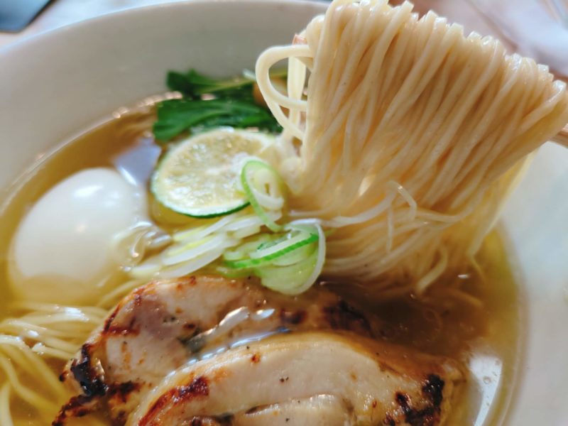 りょう花の細麺は、のど越しが良くつるつるっとすすれる、噛みしめると小麦の香り