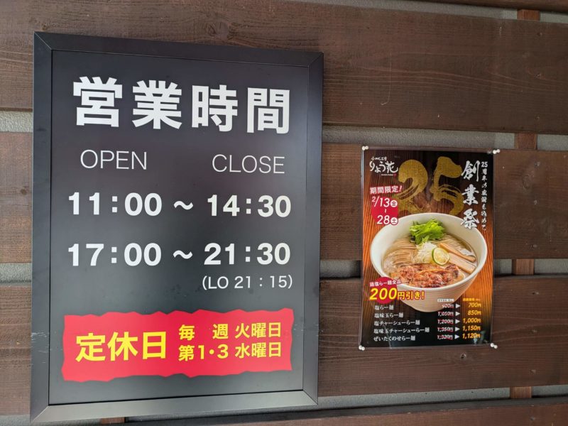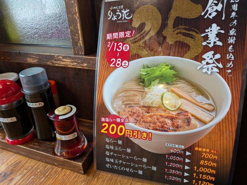 これが25周年創業祭の内容、鶏塩ラーメンが全品200円引き!これはなかなかです