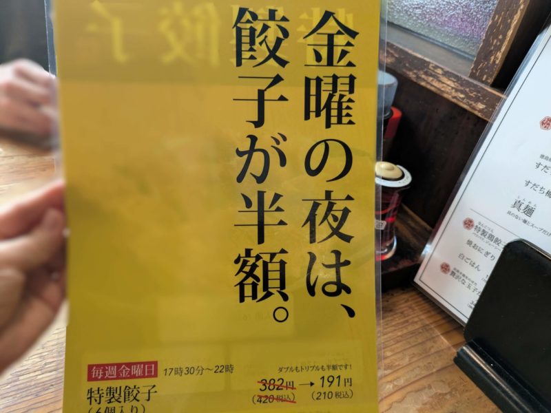 こんなのもありました「金曜の夜は餃子が半額」