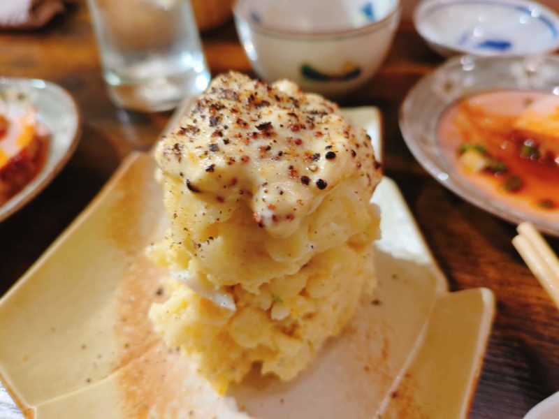 ゴロゴロと大きな芋感じる荒つぶしのジャガイモは薄味で、てっぺんのマヨ&ペッパーと調整しながらいただく