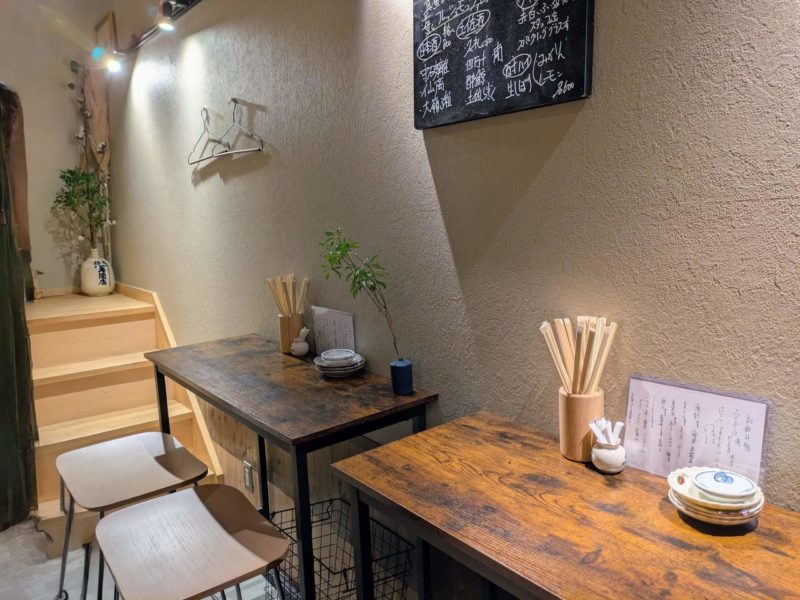 カラカラと引き戸を開けて入ると、1階は左手厨房とその前にカウンター席、右手にも壁際にカウンター席