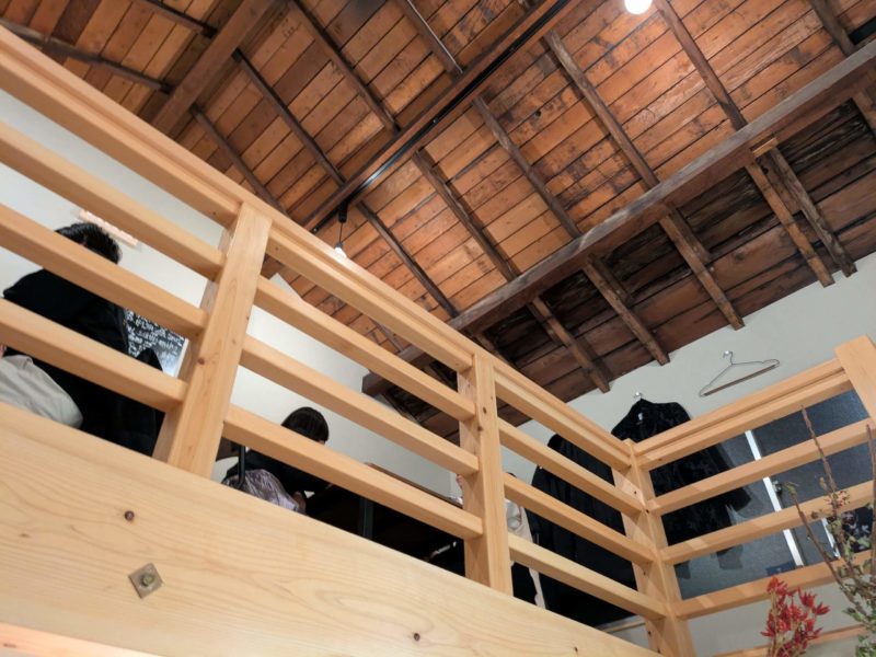 中2階のような感じの低めの2階席は、4人掛けテーブルが2つ