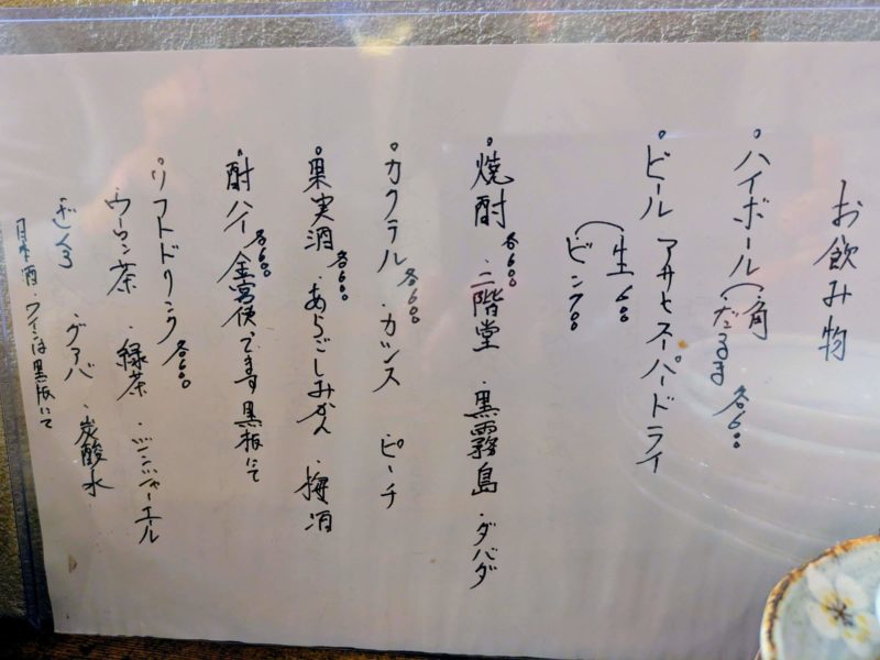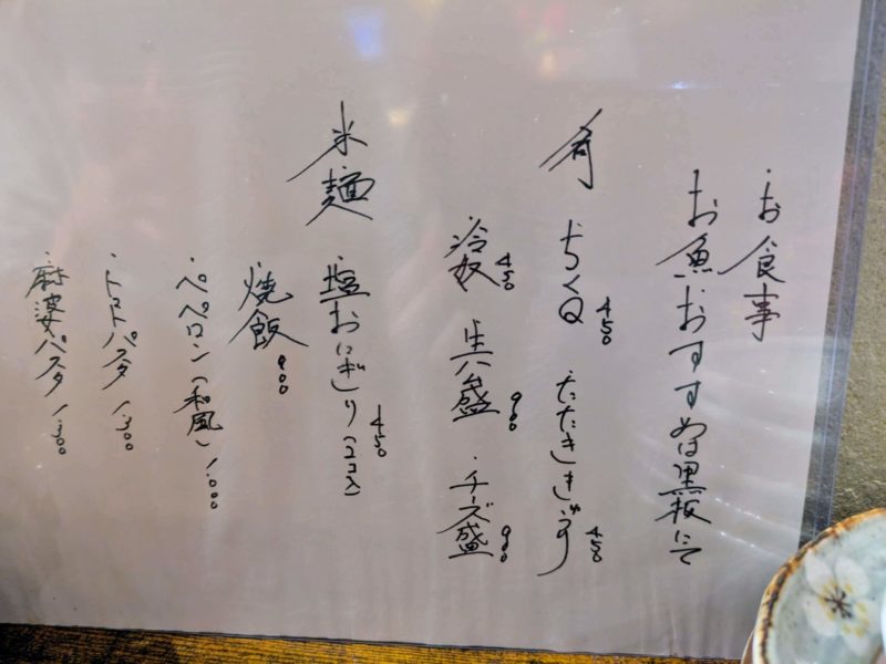 分厚いメニューなどは無く、メインは看板に書かれたおすすめ品