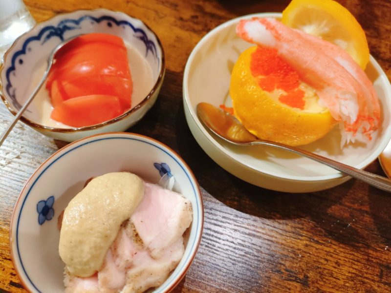 注文してないのになんかドカンときたと思ったら、なんとも豪華なお通し3種