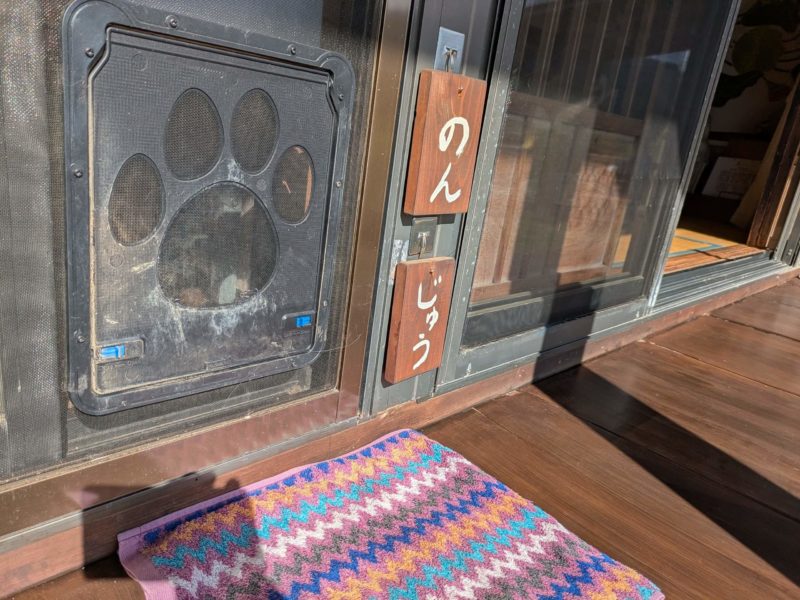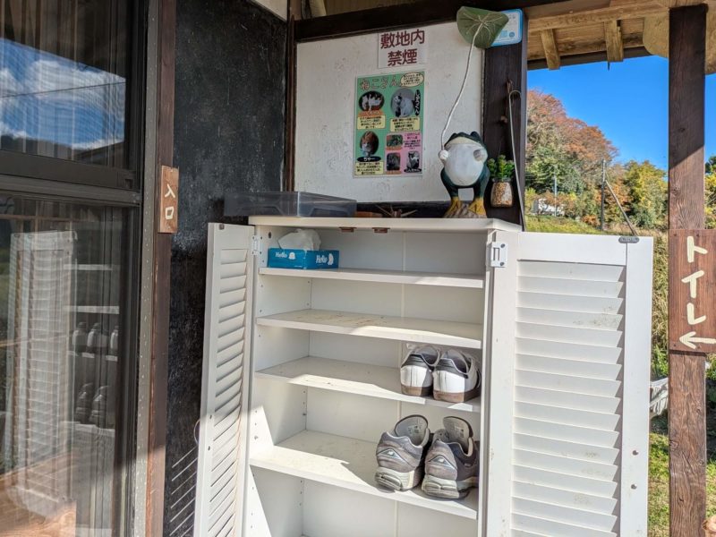 お家の中にはここで靴を脱いで入ります、靴箱の上に猫ちゃん達の紹介もありますよ