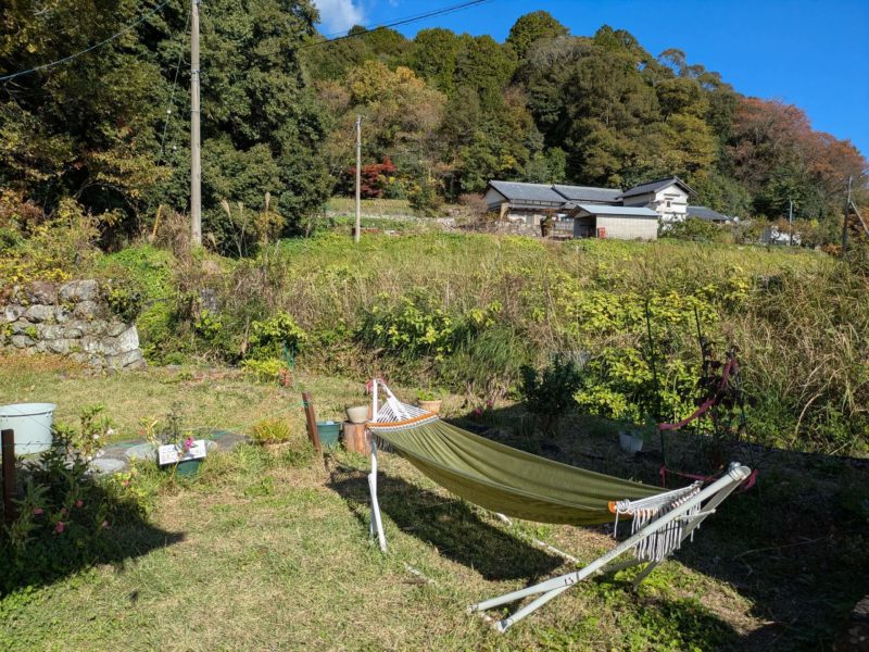 奥の庭にはハンモックも見えます、気持ちいいお昼寝ができそう