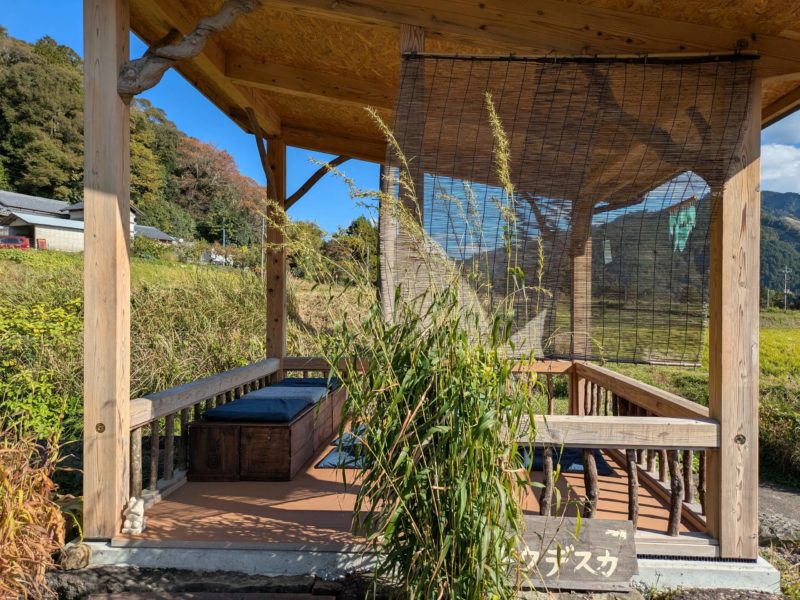 田んぼや山並みを眺めながら、バンブー風鈴の音と鳥のさえずりを聞く、ゆったりと心豊かになる時間