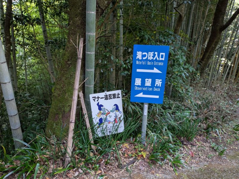 少し歩くと展望所、滝つぼへと続く遊歩道の入り口が現れます