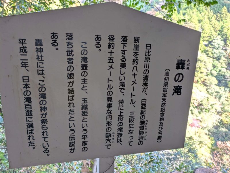百選に選ばれている高知の滝は3つ、あとは大豊町「龍王の滝」と越知町「大樽の滝」です