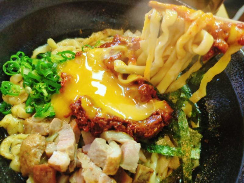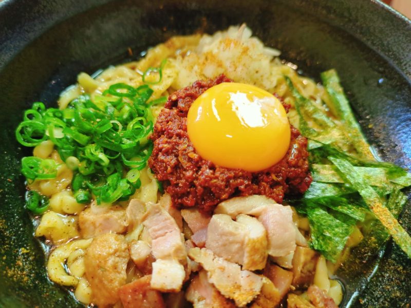 ガツンと濃いパンチのある味、スパイスカレーのような香りのいいスパイスも数種類ブレンドされてるよね?器の底に入ったタレには醤油と魚出汁の香りも感じる、辛さはそこまでじゃなく様々な旨味が一体になった一杯