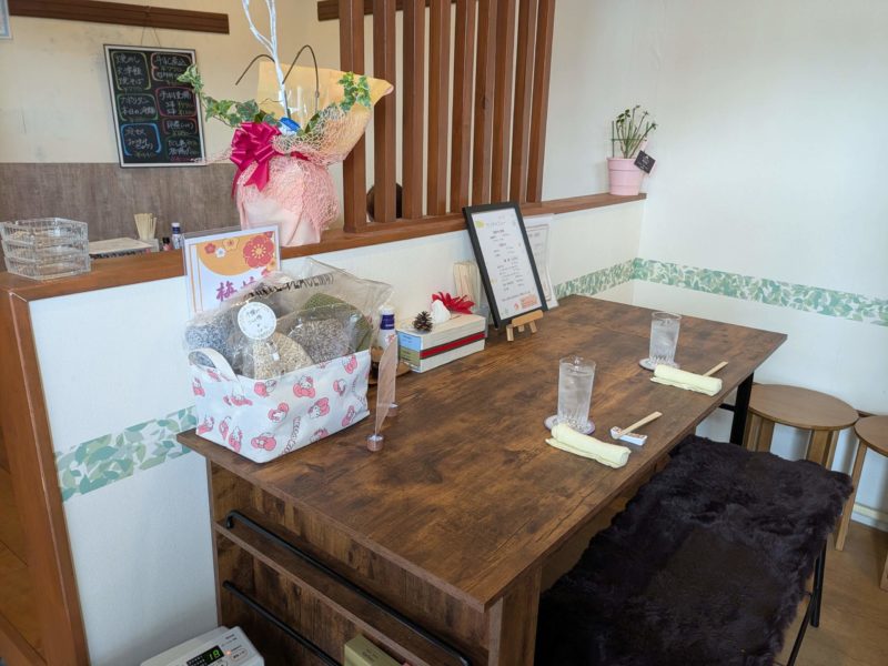 左手にテーブル席と奥に座敷席、テーブルが大きめなので4人は座れそうです