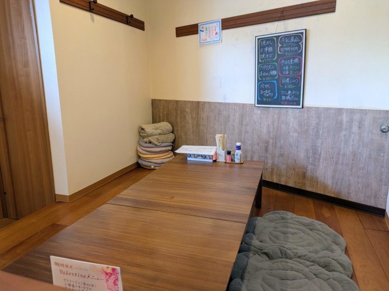 座敷席は小さ目のテーブルが2つくっついた感じで4人座れそう